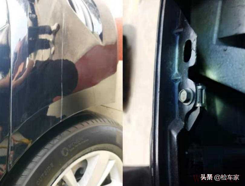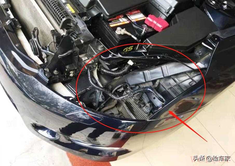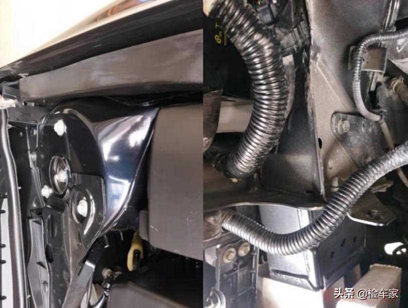 首先检查到机舱两侧减震器塔顶及纵梁没有褶皱敲打修复痕迹,周边附件没有拆卸,可以确定车头没有严重事故撞击。