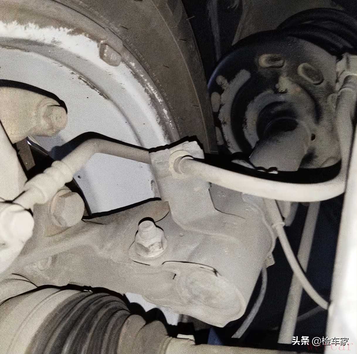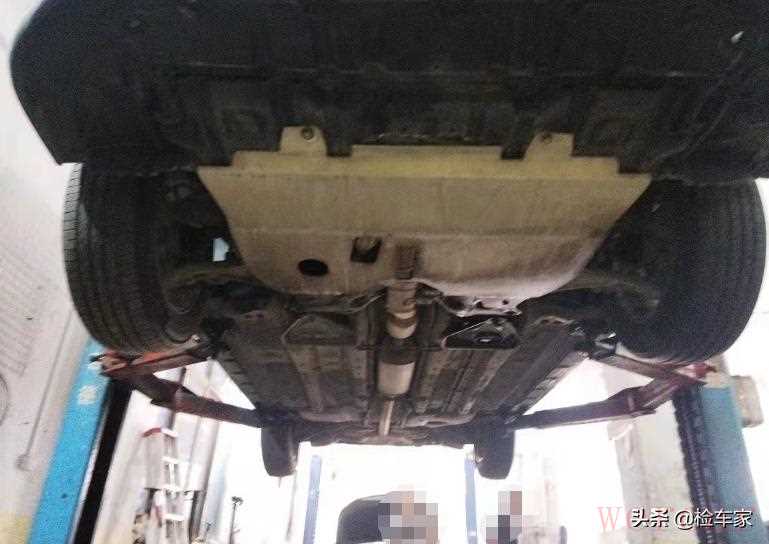 最后在客户大哥的劝说下,卖家还是配合到修理厂检测底盘,车辆升举上去,可以看到底盘还是很中规中矩的,没有异常的托底和渗漏,至于细节处还需进一步检查。