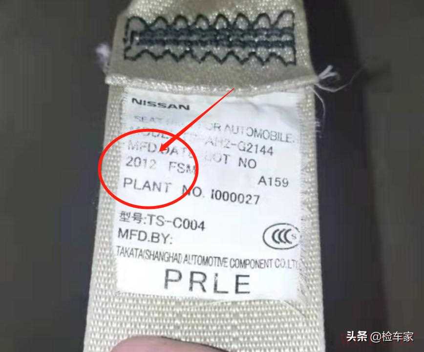 全车安全带的出厂日期都是2012年,与车辆铭牌出厂日期相符,固定螺丝也没有拆卸痕迹,安全的拉伸锁止正常,可以确定为原车出厂状态。