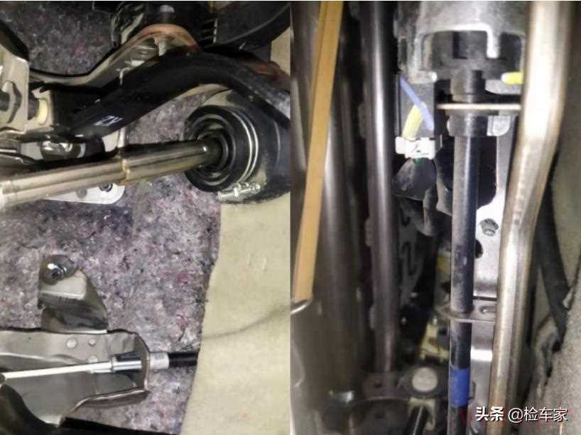 车辆前后悬挂及元宝梁这些部位同样也有拆卸,更换了减震器,不过元宝梁拆卸是吊装发动机导致的,属于连带拆卸。