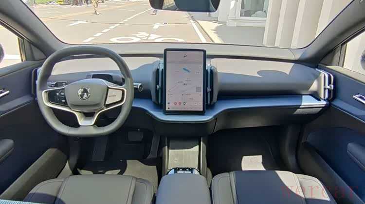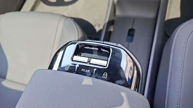 四个车门的升降车窗按键都不在门上,而是被安置在中央扶手箱两头,一端两个。再加上中控屏集成了调整外后视镜功能,这就意味着,车门内侧除了物理开门拉手之外,别无他物。整个车门回归到了最“原始”的开关功能,在彰显设计风格之余,还能有效降低成本。
