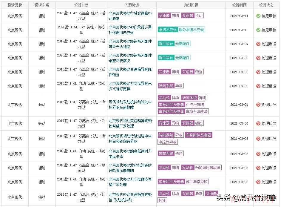▲现代多个车型因质量问题被投诉(来源:车质网)