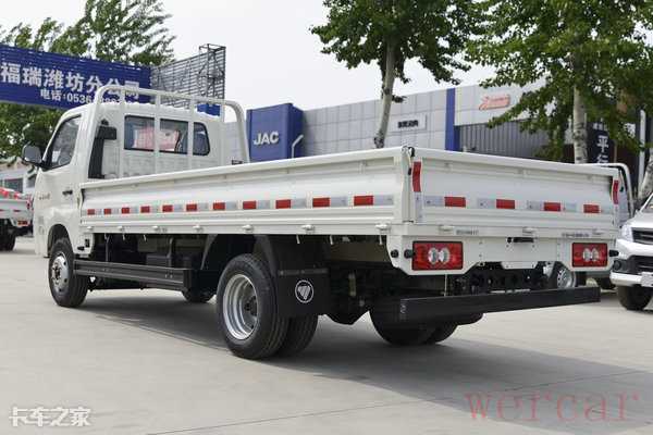 实拍车辆轴距3100mm,配备4.05米栏板货厢,保证了充足的载货空间。