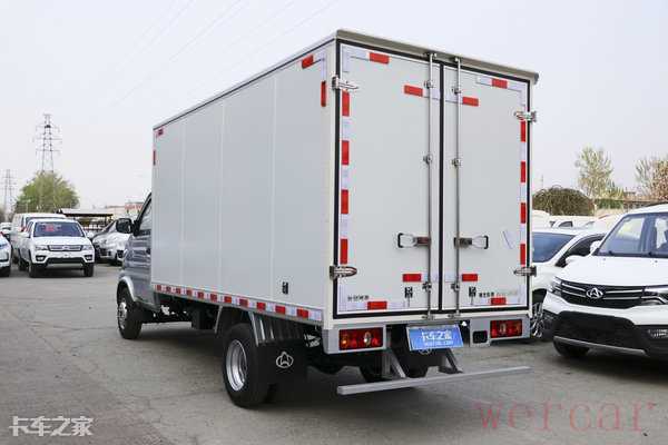 实拍车辆轴距2850,采用单排驾驶室,配备3.5米货厢,整个大小中规中矩。