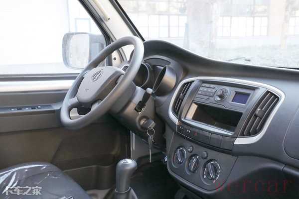 车内延续了延续了家族化内饰,整体以深色为主基调,中控区设有银色饰条装饰。配置上,带有电动车窗、MP3、空调以及电源接口等功能,也符合该产品定位。