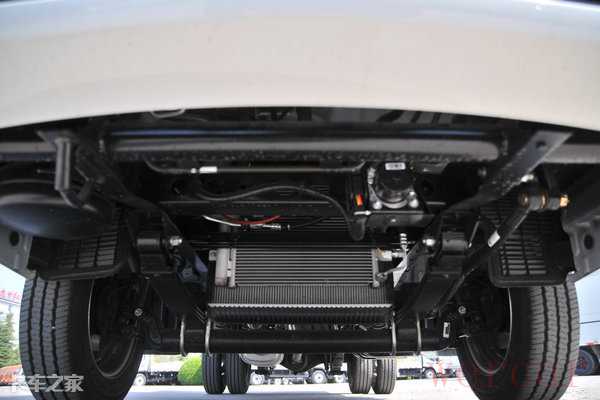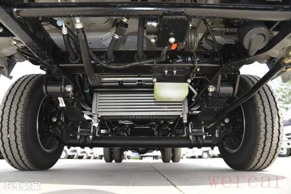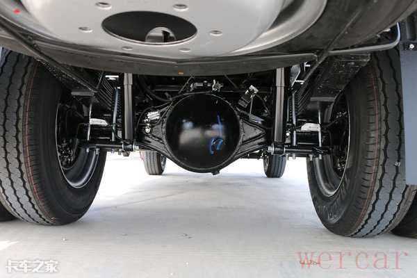 传动匹配的是一款蒙沃5挡手动变速箱,带有双锥同步器,换挡更加轻便。配备185R15LT规格轮胎,采用2.5吨级后桥,后双胎设计,前碟后鼓、液压油制动。另外带有制动间隙自动调整臂、ABS等。