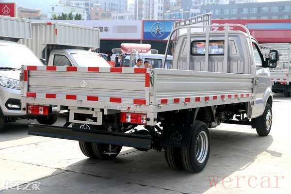 传动系统匹配万里扬WLY5G32 5挡手动变速箱,轮胎规格185R15LT,后桥速比4.33。此外,该车车架还采用轻量化高强度大梁、加强型后桥、高承载板簧等配置,让车辆在提升承载力的同时,保持轻量化,在合规范围内多拉快跑。
