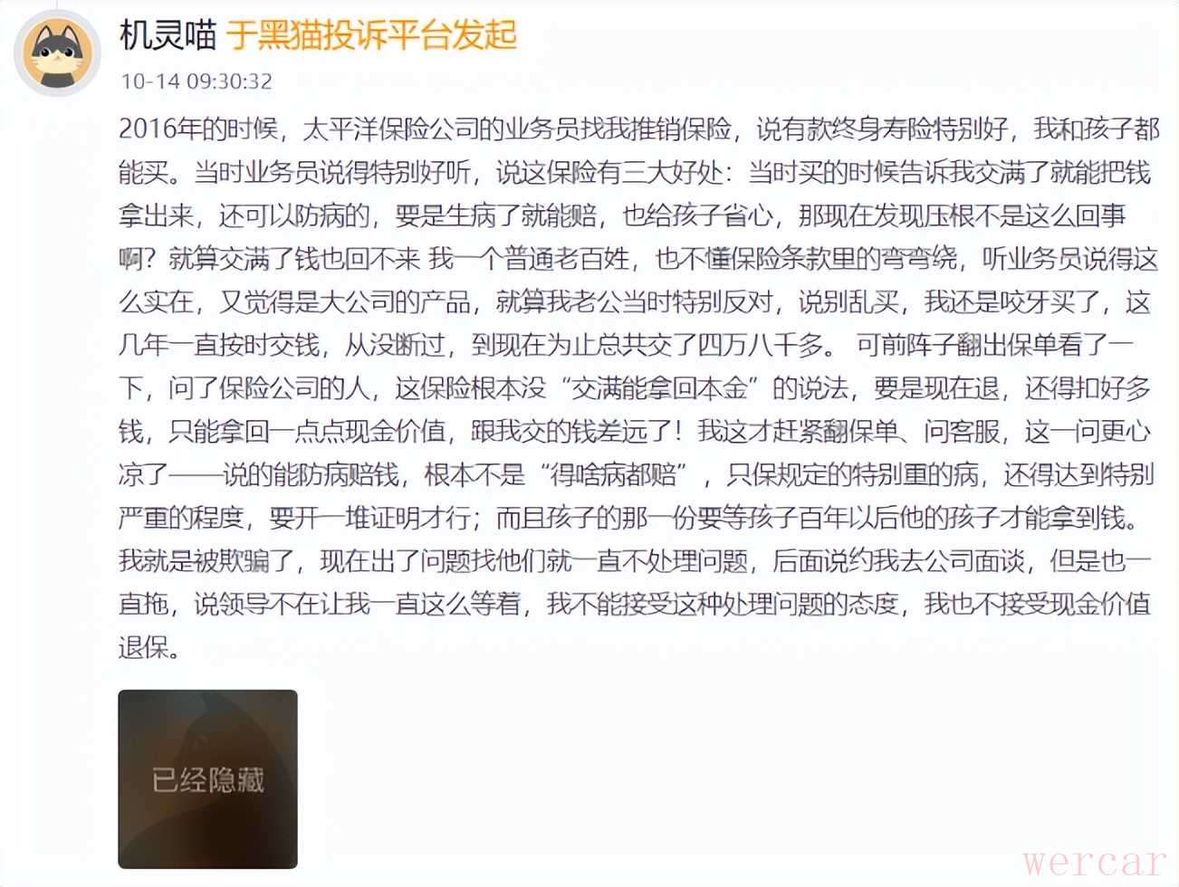 证券之星注意到,10月9日,有消费者投诉称,2018年12月被太平洋保险以“内勤人员” 岗位招聘,实际却被要求冲业绩自购保险,且对保险责任内容毫不知情,最终投保了两份相同保险。此类“招聘式销售”手法,将求职需求与保险销售捆绑,严重侵犯求职者知情权与自主选择权,反映出太平洋保险在人员招聘与销售管理环节的边界模糊,合规管控存在明显疏漏。