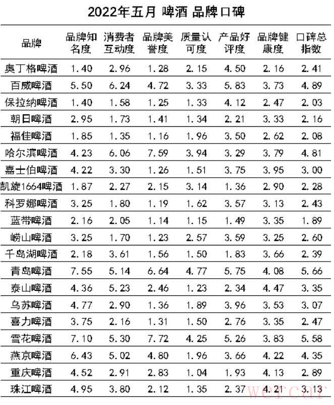 关于你提到的“2022年5月啤酒品牌口碑榜”,我需要说明一下: