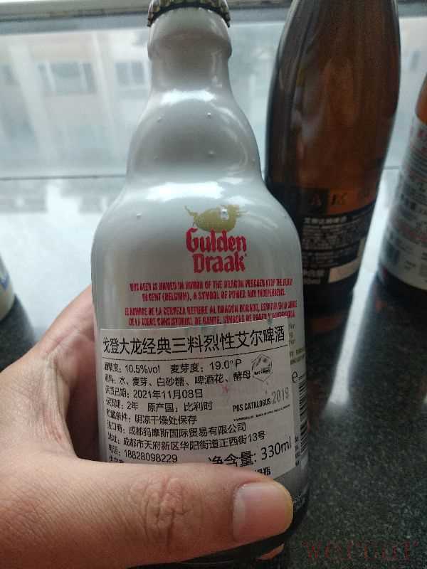 8.督威啤酒:来自比利时的一款酒劲非常大的啤酒,采用上层的艾尔发酵法,酒精度在8.5°,原麦汁浓度16.9°,一般两瓶酒量的人,这个一瓶就刚刚好。