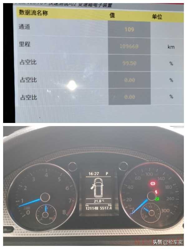 随后检查到座椅螺丝及骨架、方向管柱、点烟器均无生锈痕迹,着车,发动机启动正常,怠速稳定,仪表自检正常,OBD电脑检测无异常,进一步进入变速箱系统,读取一下变速箱运行里程。