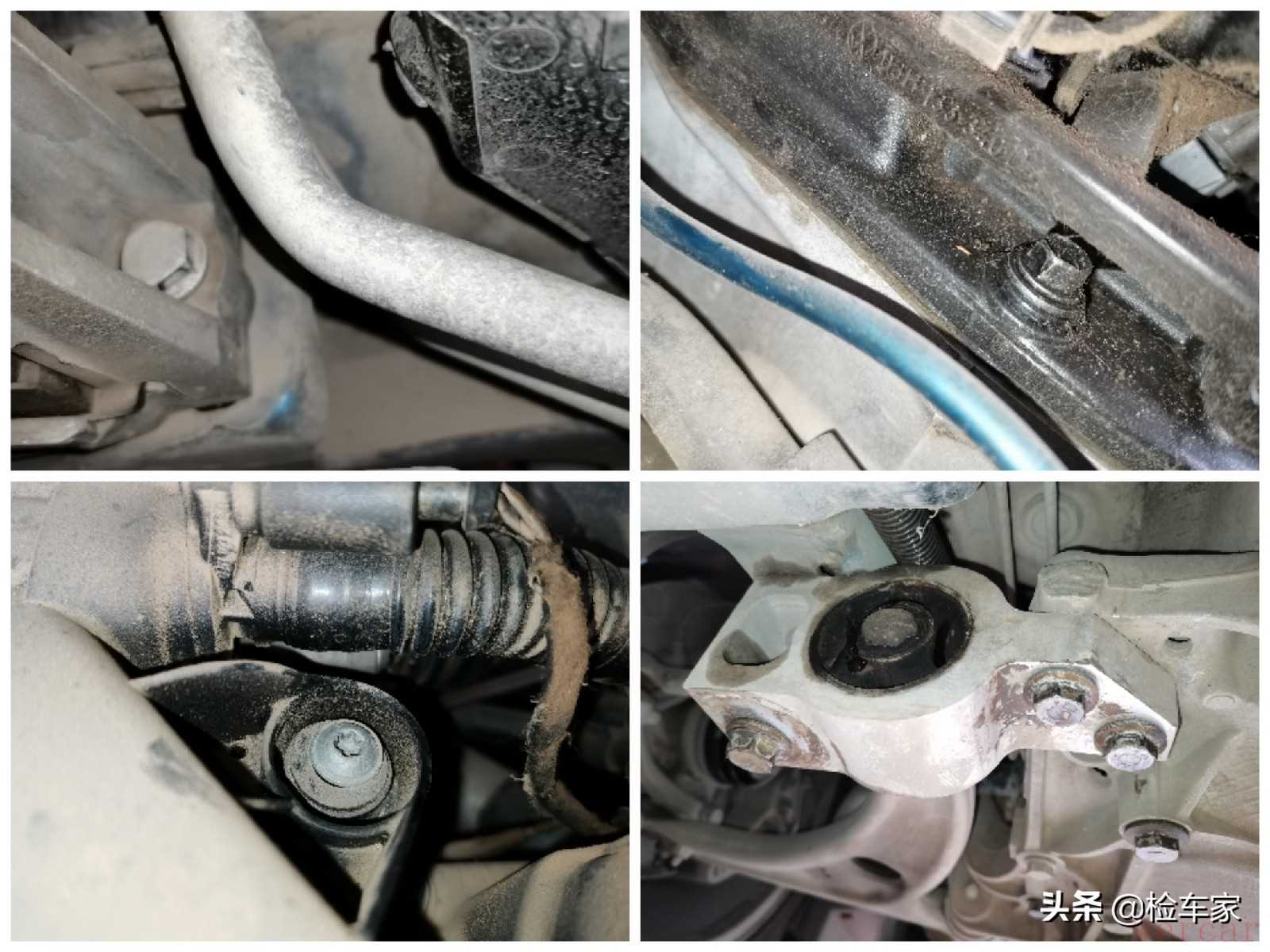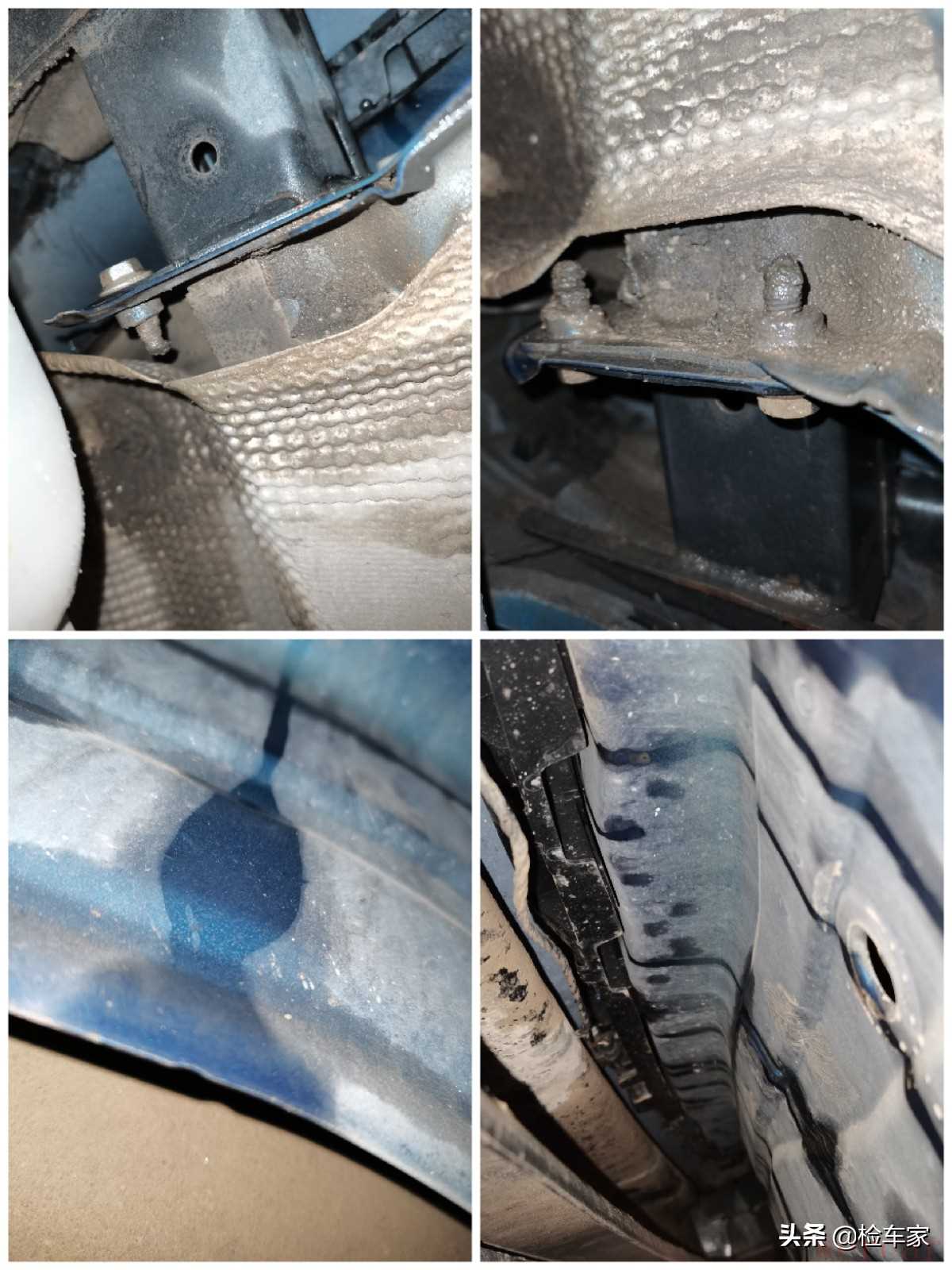 从底盘就可以看到发动机皮带严重老化,底盘螺丝多处拆装,悬挂易损件更换。