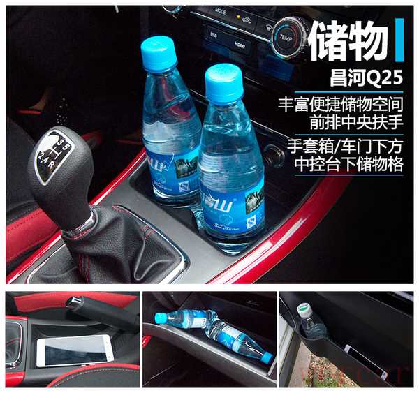 昌河Q25储物空间较为丰富,足以满足用户携家庭出行对便利储物空间的需求。从实际体验来看,除中央扶手下方的储物空间显得并不充裕外,常规的手套箱、中控台下方的储物空间经过人性化设计,容量及物品拿取的方便程度恰到好处,实用性表现非常出色。
