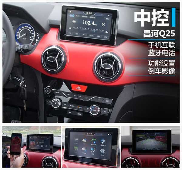 昌河Q25配备的7寸触控显示屏功能丰富且实用,除可显示常规的收音机、空调及车内功能设置外,还提供手机互联功能,轻松实现手机音乐播放,速度感知音量调节功能使其在高速行驶中始终提供舒适的音乐氛围。此外该系统还支持蓝牙连接功能,可实现蓝牙音乐及电话接听,非常适合年轻化购车人群。此外其倒车影像功能还可现实清晰的倒车标线,为新手驾驶者提供倒车安全保障,高配车型将配备GPS导航功能。