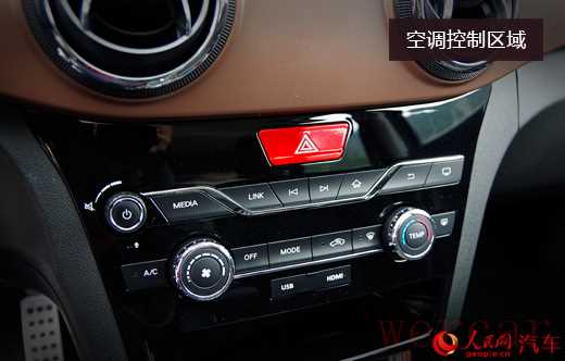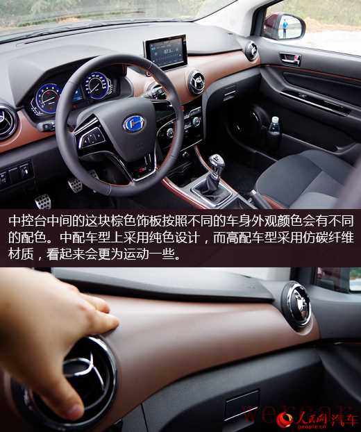 中控台中间的这块棕色饰板按照不同的车身外观颜色会有不同的配色。中配车型上采用纯色设计,而高配车型采用仿碳纤维材质,看起来会更为运动一些。