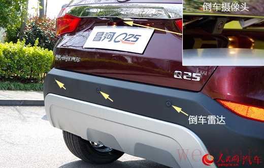 Q25采用了三点式倒车雷达并结合了倒车影像,使倒车变得方便安全,在同级中这样的配置也算绝对拿得出手的了。