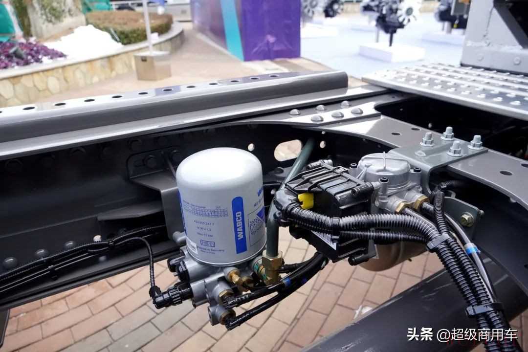整车制动系统压力高达12.5bar,配有CAPU电控干燥单元,EBS3.3电子制动系统也给安排上了。整车在制动方面更加高效安全。而且还配有液力缓速器。