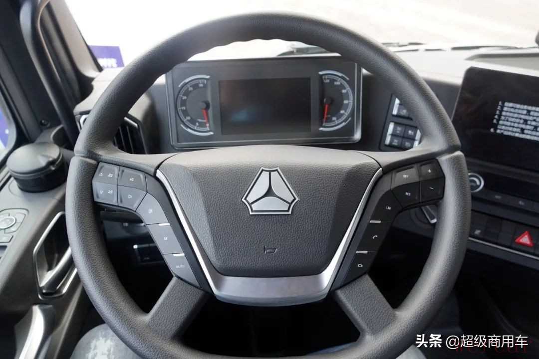 与之匹配的变速箱为重汽HW-WY16变速箱,16挡AMT,换挡手柄为重汽的无忧换挡手柄,相比较之前的无忧档杆,这是一款全新升级自回位手柄,且在自动模式下可以进行手动干预换挡功能,操作更容易方便。