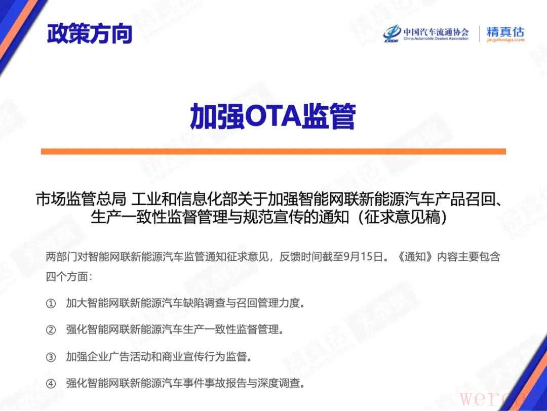 智能网联汽车的OTA在线升级,让车主不用换车就能享受新功能,体验大幅提升,但行业乱象也随之而来。8月发布的《市场监管总局 工业和信息化部关于加强智能网联新能源汽车产品召回、生产一致性监督管理与规范宣传的通知(征求意见稿)》直接“亮剑”,依据多部现行法律法规,重点整治OTA升级中可能侵害消费者权益的行为;同时明确要求规范辅助驾驶宣传,避免误导,切实守住行车安全底线。