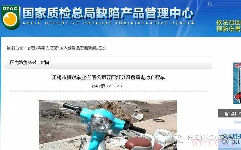 国家质检总局紧急召回,奇蕾电动车180辆,质量问题不容忽视!
