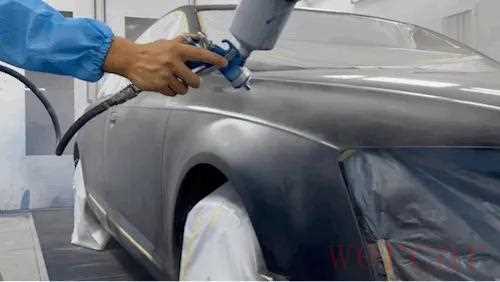 在喷涂前,需要对整个车身进行除尘擦拭,防止油污和脏点影响喷涂效果