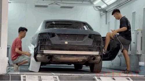 色漆喷涂过程需要3遍施工,目前看上去,全车都是哑光状态