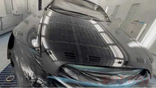 现在是喷涂的清漆,也就是提升亮度,保护车漆的最后一道屏障。它的施工难度相对于色漆更加考验师傅技术。气压、手法、距离都将直接影响成品效果。