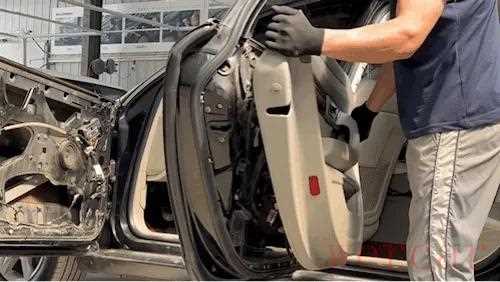 后门玻璃处原先都是铆钉,所以要按照原来的样子从新装回去