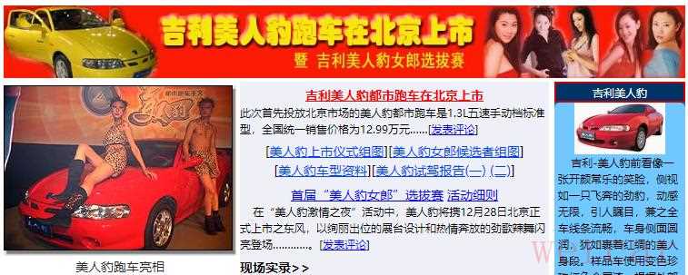 顺便插个好玩的,在查资料时候甚至还能搜到美人豹在渣浪汽车上的专题页。当时吉利还搞了个美人豹女郎选拔赛,那画风,老司机似乎都在哪里见过。
