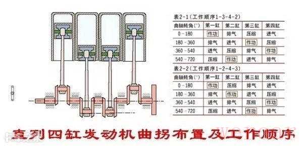 发动机工作顺序的基本原则是:各气缸的做功间隔角尽量均衡,连续工作的两个气缸向对应的曲拐夹角相等;连续做功的两个气缸相隔尽可能远一些,最好是在发动机的前半部和后半部交替进行,这样一方面可以减少曲轴主轴承连续载荷。