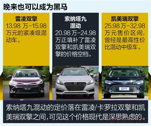在这之前,普遍认为混动中级车中凯美瑞双擎的价格相对来说是比较亲民的,25.98万元的入门价格虽然比常规动力高了几万元,也在可接受范围。而在索纳塔九混动上市之后,大家心里混动中级车的门槛再次降低。