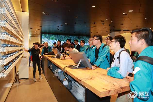 体验馆里有中文讲解员,这辆车是什么不是重点,注意到室内到处都是的铁管了没?这就是体验馆的主题:金属流动感,从冷冰冰的钢铁,到各色各样的现代汽车。