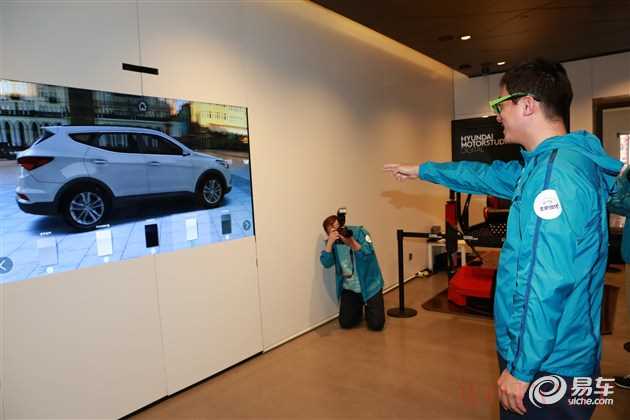 接下来是现代品牌体验馆。和数码展示厅不同,体验馆的规模要大些,且以实车为主,酷炫的感觉也要强不少。下面这张就是在展厅外拍的“现代汽车工作室”招牌。