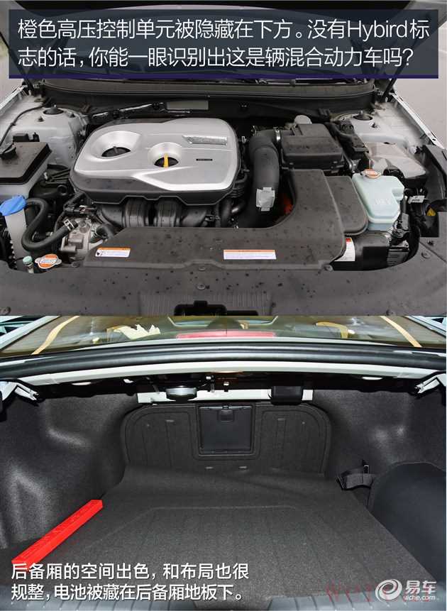 和一些混动车采用镍氢电池不同,索纳塔九混动采用的是能量密度更高,体积更小的锂电池。电池仓薄薄一片藏在后备厢下方。这个电池负责给位于发动机和变速箱之间的同轴电机供电,而在同轴电机发电时,也将电能储存到这里。值得一提的是这台电机可以在最高120km/h的车速范围内全区间工作。
