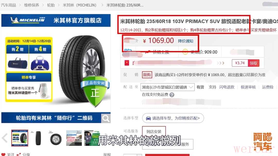 第一款是235/60/R18的轮胎,这个型号在很多SUV上都有使用,我看了一下如果是你追求舒适耐磨,用米其林旅悦系列,这个轮胎基本上单条轮胎价格就要1000左右。