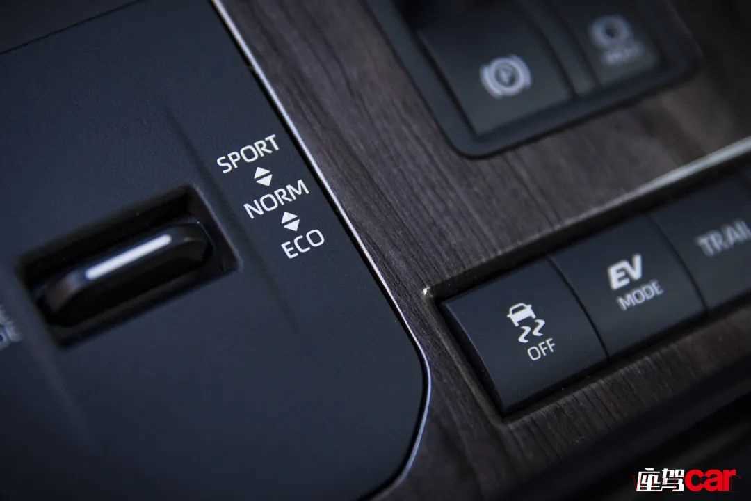我们的试驾车为顶配四驱车型,由于双电机的加持,新车起步动态很轻盈,并且加速十分顺畅,有着混动车型一贯的风格。不仅如此,后程动力表现同样优秀,这对高速行驶时驾驶员面临超车更加有自信。另外,新车有3种驾驶模式,只是切换后差别并不太大,因此不过多赘述。相信对于这样一款车而言,动力输出的平顺性远比绝对动力值更有意义。不过平顺之余,新车对于内燃机启动后发出的噪音抑制的并不优秀。尽管这代车型在NVH方面有提升,但这一方面却被忽略掉了。很明显,发动机舱的隔音材料用得不够或者材料使用的位置出现了一些偏差,但我觉得丰田不应该出现这样的问题,它们在以往混动车型的NVH方面经验非常丰富,希望日后能得到改善。