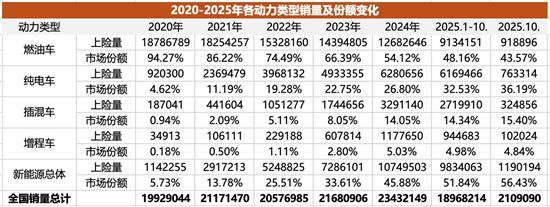插混和增程车型,今年1-10月的市场份额分别为15.9%和5.5%,相较2024年的15.2%和5.4%,各有接近0.1个百分点的微增。