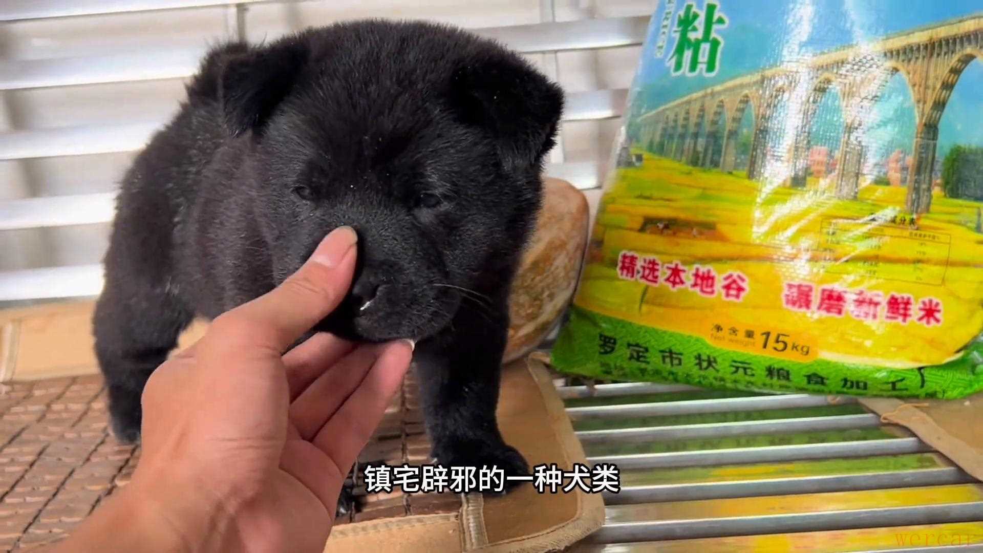 给大家看看我家繁殖出的小狗是怎么样的。现在目前是45天了,已经驱好虫,打好疫苗了,尾巴也差不多快卷进去了。五黑犬,九弟繁殖的黑舌头,全身都是黑的。现在给大家展示一下这个小狗。