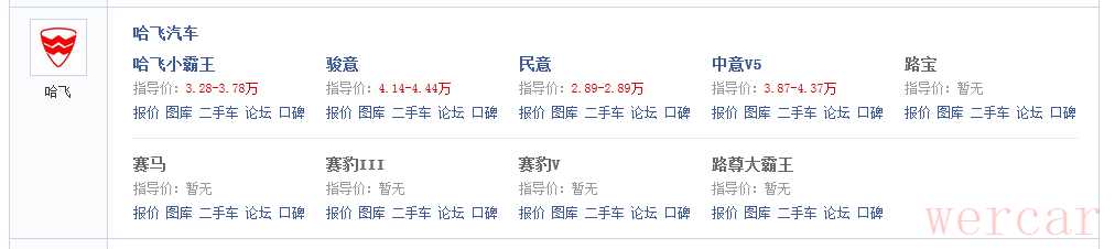 汽车之家品牌车型数据库中,哈飞只有意字辈微型客车还有价格可寻,但款式都停留在5年前。