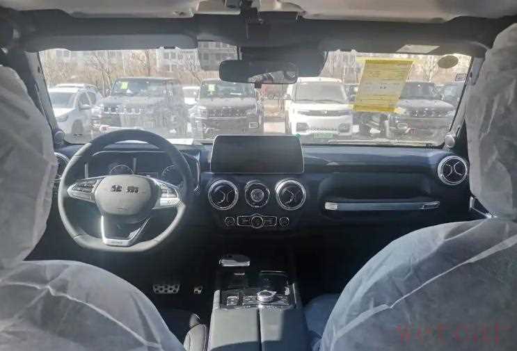 内饰沿用现款产品设计风格,在讲求硬朗复古的同时,力求配置升级。柴油版车型也有了更富科技感的内饰设计和黑色、黑红双色与黑蓝双色三种配色方案,多功能越野仪表也被整合到了12.3英寸的全液晶仪表中,大尺寸的中控液晶屏便利同时,为新车增添了科技感。