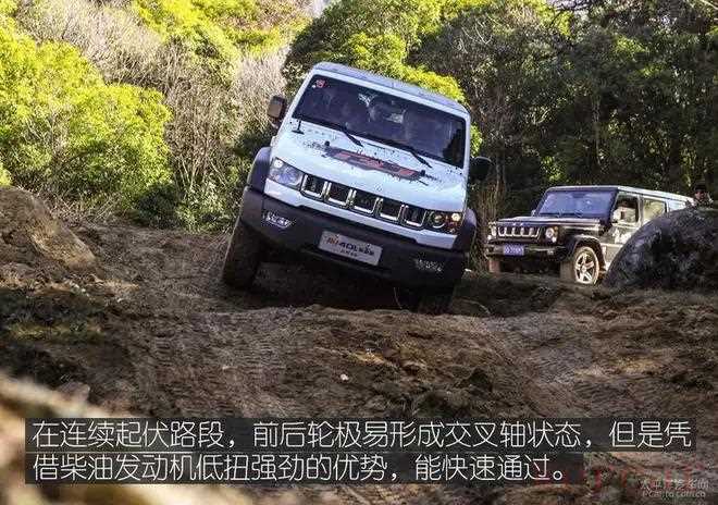 而在越野路段,柴油版BJ40L像焕然一新般,在公路路段表现出来的不适,在颠婆路段上却变得非常和谐,皆因这才是它想走的路。由于林间山路起伏较大,为了保持强有力的动力,档位全程大多数处于第1档,少有的较平坦路段才有机会切换至2档。