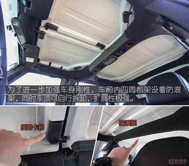 与普通的城市SUV不同的是,硬派越野车大都自带防滚架,以进一步提升车身刚性,即便出现意外翻滚情况,车厢受损后对内部的侵入也不至于过大,从而保护车内的乘客安全。