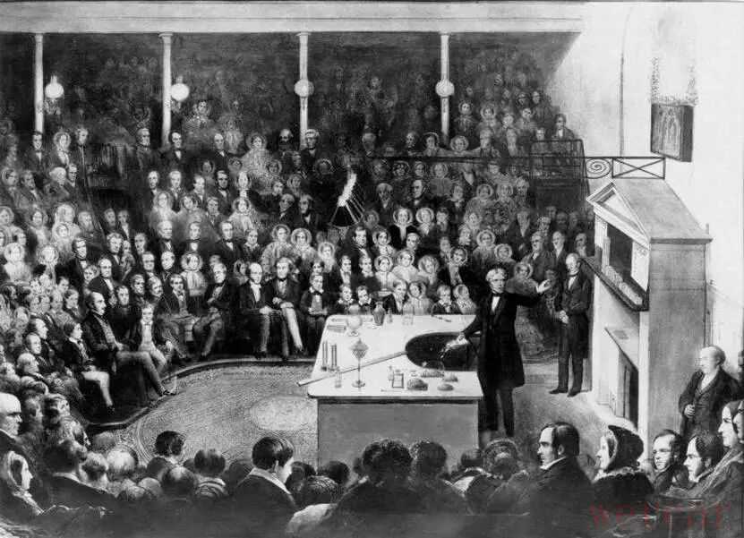1799年英国皇家研究院(Royal Institution)成立时,按照发起人伦福德(BBenjamin Thompson, Count Rumford),1753—1814)的设计,科学研究并不是其目标,他想做的是研究和讲授科学发现在改进艺术和制造业方面的应用,公开传播有关新的有用发明的信息,并为工匠提供一所学校。19世纪20年代法拉第创设的“星期五演讲”正体现了皇家研究院的宗旨。