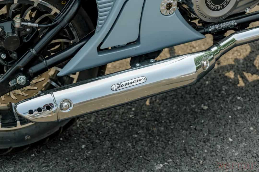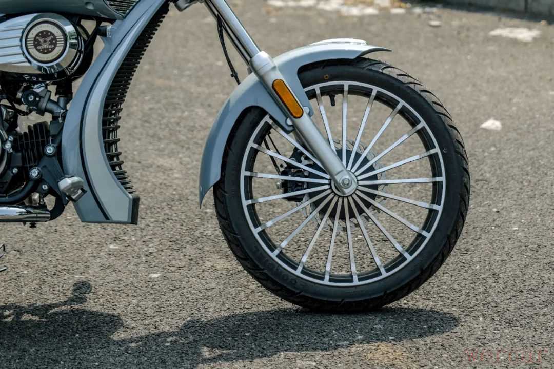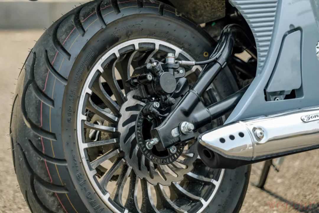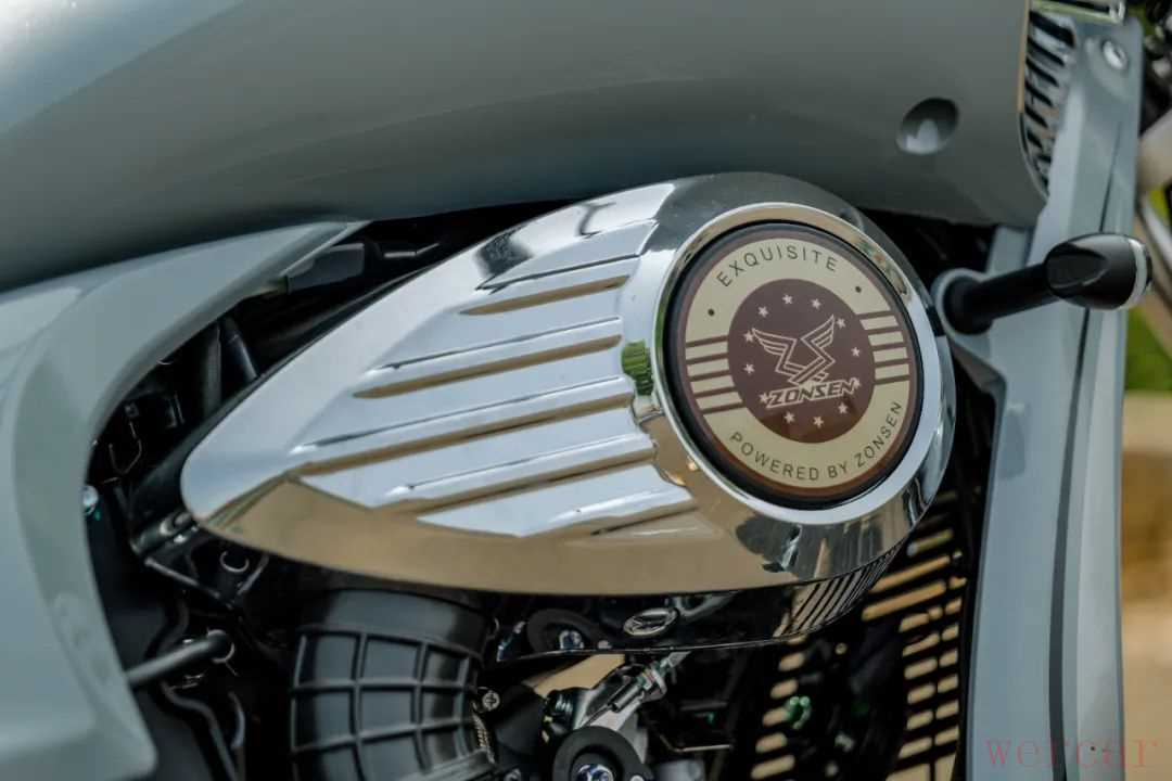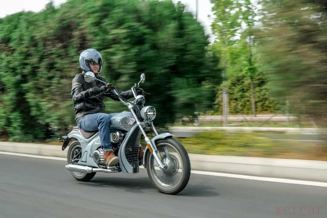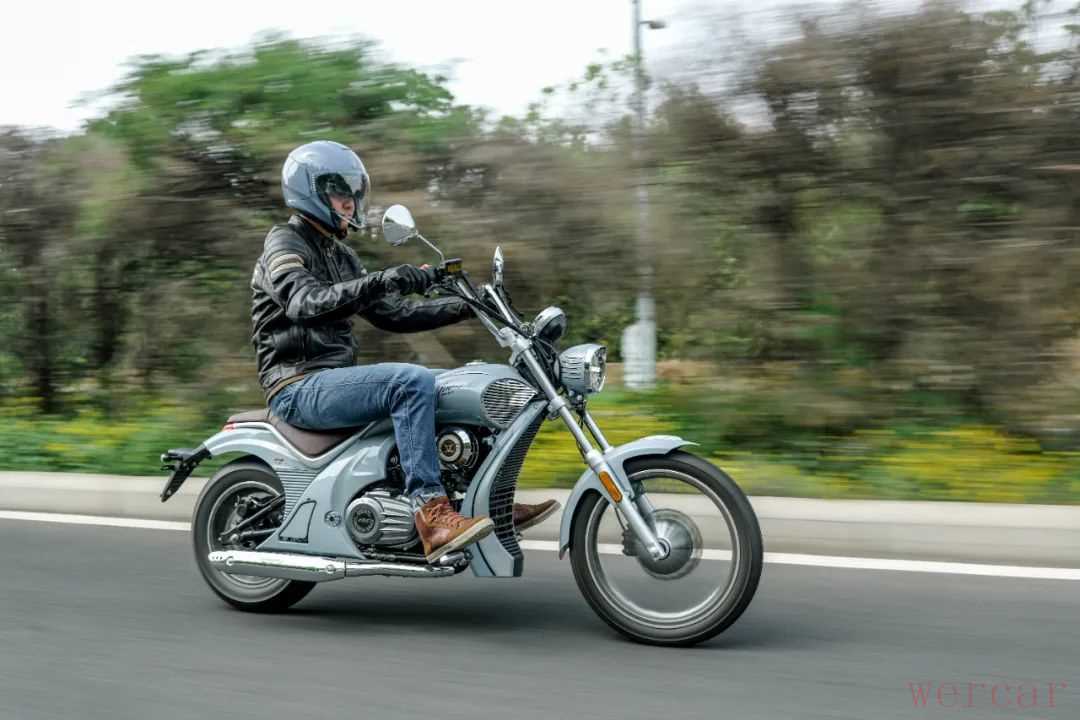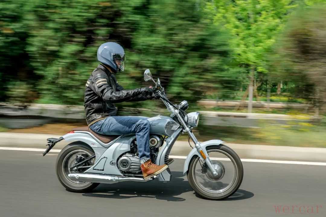 为了更加还原巡航车的特点,这款车采用了类似硬尾的设计,后减震隐藏在了车架中,并且配备了两个气囊减震器,前减震采用正立式前叉,行程达到130mm。制动系统采用前后碟刹,前双活塞后单活塞,同时这款车还配备了液晶仪表。整车配置分为两个版本,Air版标配ABS和边撑熄火,Evo版在Air版的基础上增加了可关闭TC、液晶仪表和T-BOX车联网,整体配置在同级别中算是非常高的。