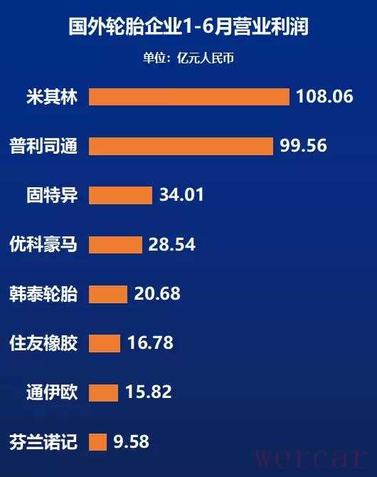 在国外的营业利润对比中,排在第3位的固特异在多年亏损之后,在今年半年数据中营业利润终于实现正增长。
