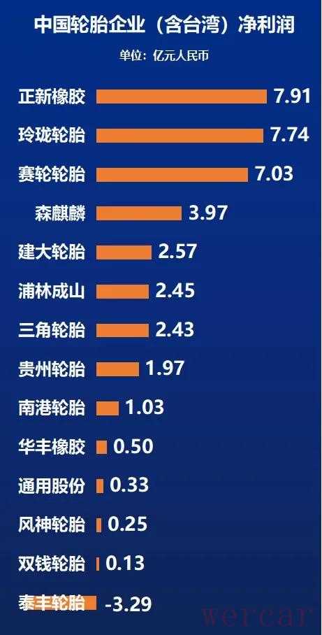 表格中唯一净利润负增长的企业,是同为台湾企业的泰丰轮胎。