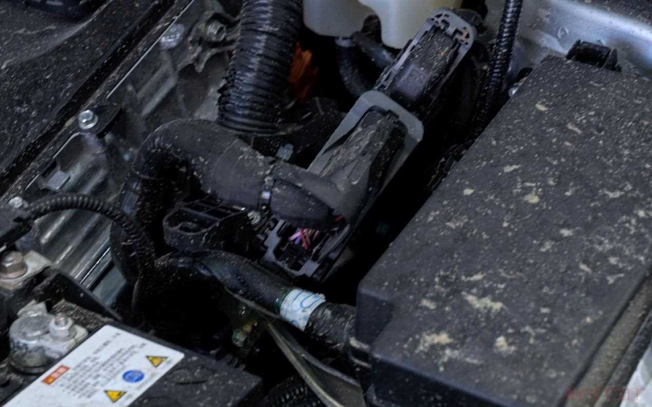 在前保险杠拆下来后,热衷于网络热门生物鉴定的志明在水箱散热器上发现了一只黄粉蝶、一只小蟋蟀和一大堆尸体不完全的小苍蝇。所以在此要提醒广大的车主朋友,车辆在经过一段时间的使用之后,需要清洁一下水箱表面,以免水箱散热面被昆虫的尸体和各种杂物包裹导致散热效率降低,水温过高的情况发生。