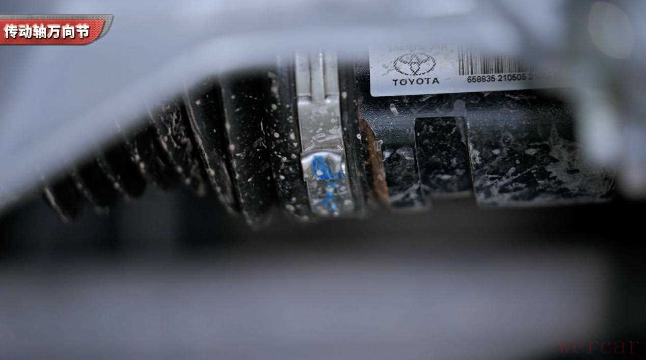 在我们将覆盖件拆除并仔细检查之后发现,雷凌双擎的底盘并没有出现重要部件的锈蚀,仅在刹车、法兰盘、前传动轴万向节的外壳发现了轻微锈蚀,但是这种锈蚀只发生在表面,因此不会对正常使用产生影响。而且基本所有的车在这些地方都没有做防锈处理,所以绝大多数车在相同的部分,也基本会出现同样的生锈。但雷凌双擎在做了防锈处理的其他部分可以说是完好无损。