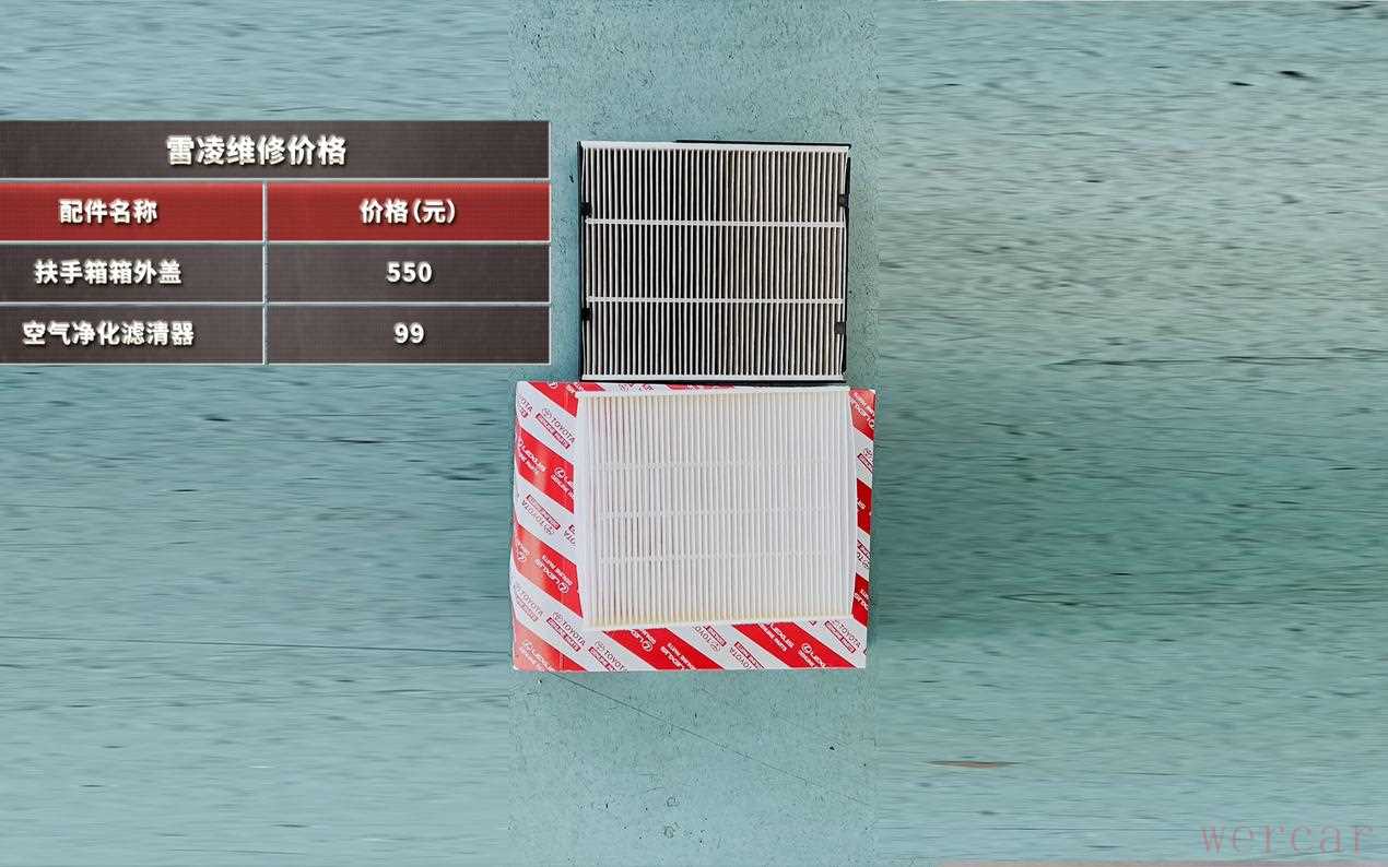 不过这块儿扶手箱盖板实在是不便宜,4S店报价为550元,订货周期需要10天左右。而空调滤芯的价格就非常实惠了,售价为99元,并且更换免工时费。