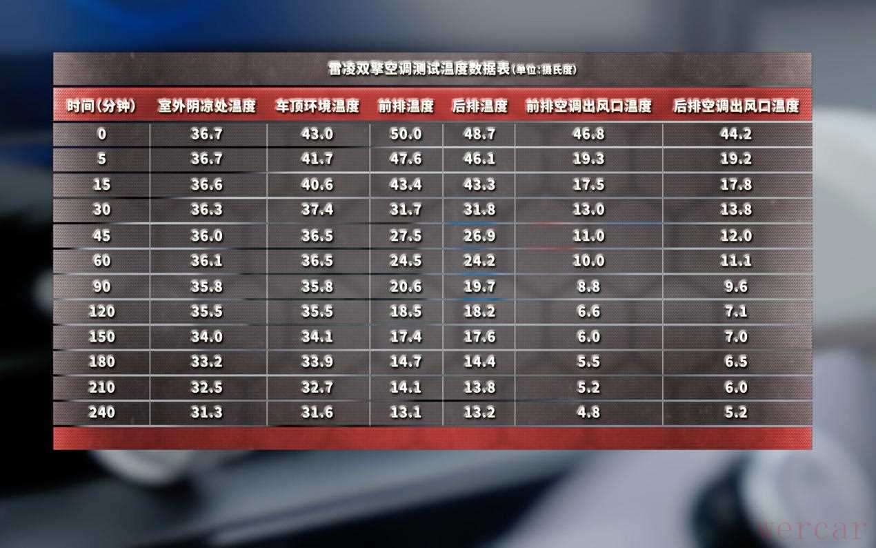 在实际开始测试之前,我们先对车辆进行了两个小时的暴晒,此时环境温度是36摄氏度,车身表面温度达到了80摄氏度,车内也达到了50摄氏度左右。测试开始后车辆原地怠速,车窗处于关闭状态,空调开启内循环及最强制冷模式。开启空调5分钟后,前后排空调出风口温度分别为19.3摄氏度和19.2摄氏度,但车内环境温度下降并不明显。45分钟后,前后排环境温度下降到27.5摄氏度和26.9摄氏度,达到了适宜乘坐的程度。4个小时之后,外部环境温度从36摄氏度降至31摄氏度,但海南户外的体感温度依然非常炎热,此时雷凌双擎前后排空调出风口的温度仅为5摄氏度左右,环境温度也仅为13摄氏度。